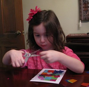 I like that, in addition to the tissue paper squares, they provided plastic gels that the kids could cut up themselves. This is a material we ordinarily do not have around the house and it added something new for the kids.